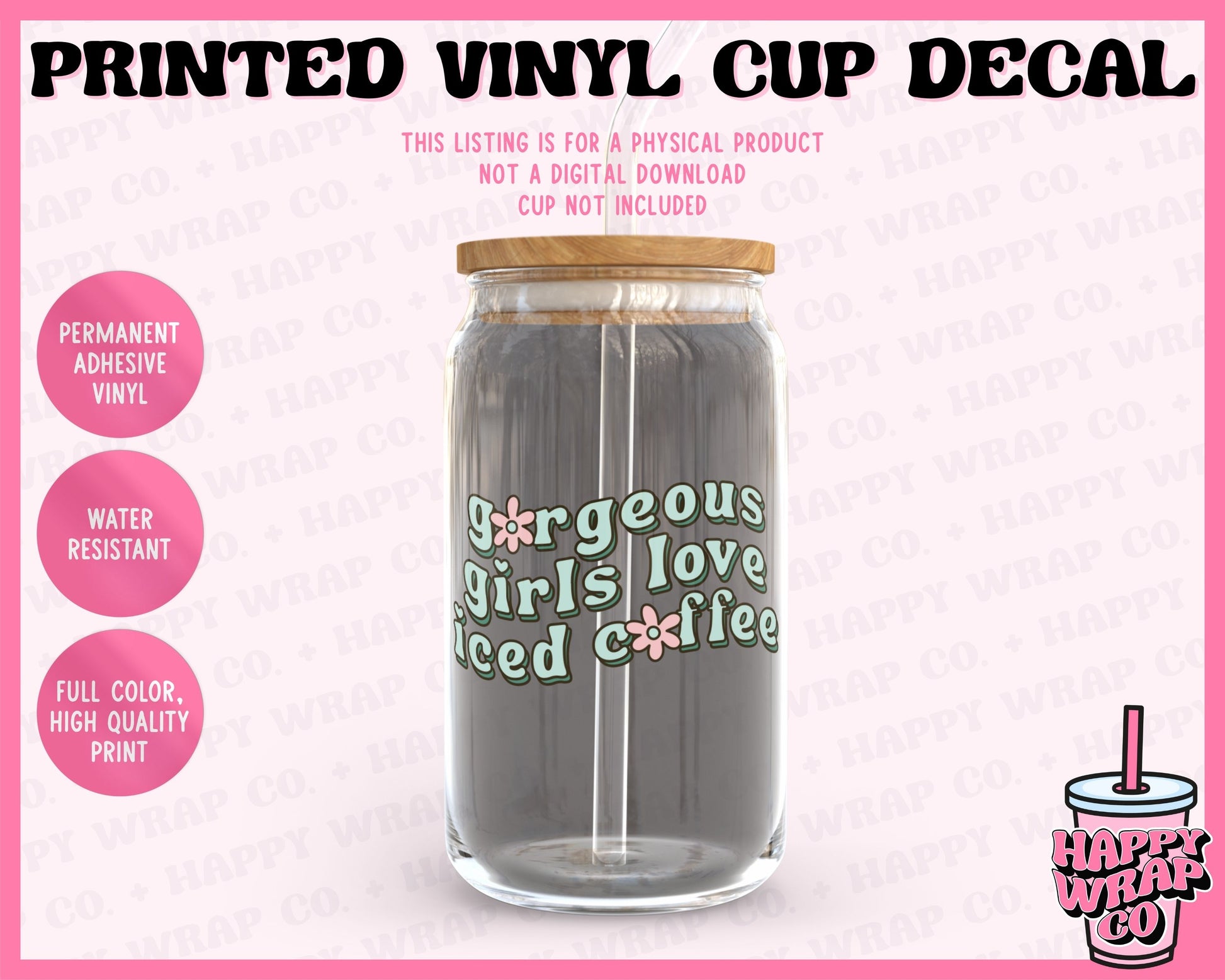 THIS LISTING IS FOR ONE (1) ADHESIVE CUP DECAL ONLY. You will have to supply your own cup or glass for application. Our decals are professionally printed with eco-solvent ink using a commercial grade printer.